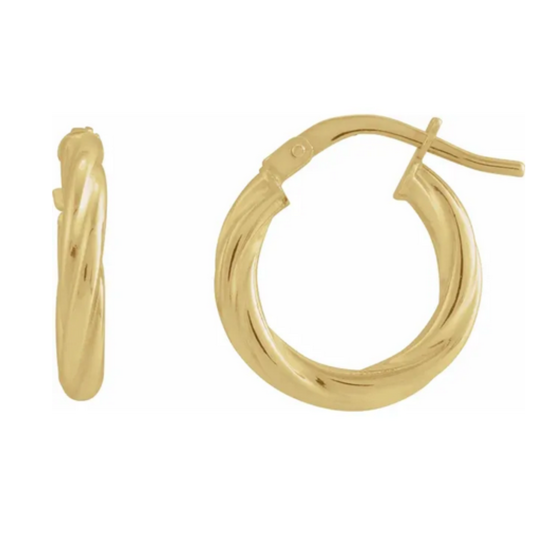 These gold hoops are so simple and perfect for everyday! 14k yellow gold, 15mm.